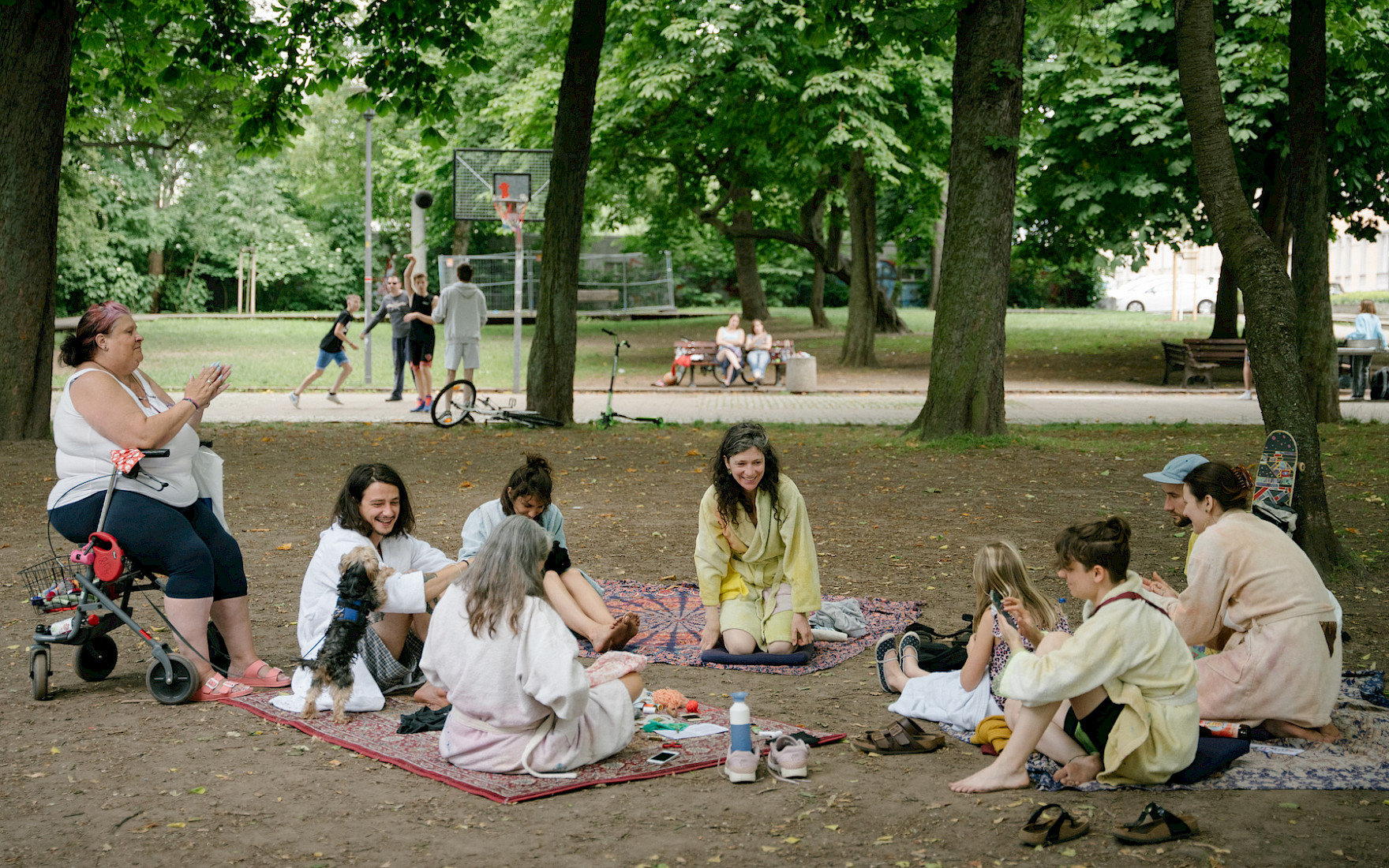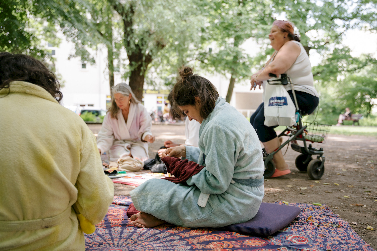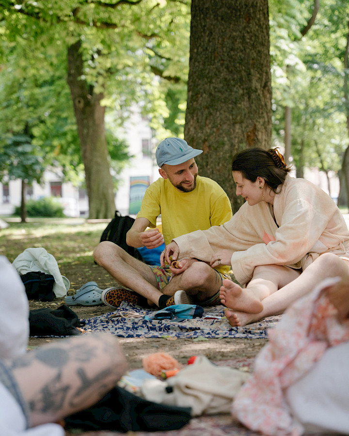 For the art festival "An die Arbeit" in Chemnitz (Germany), the FHP realize a workshop centering on the topic of Care Work. We choose to hold the workshop in the park Lessingerpark in the district Sonnenberg, inviting passersby to join, resulting in dialogues between people with very different economic and cultural backgrounds.